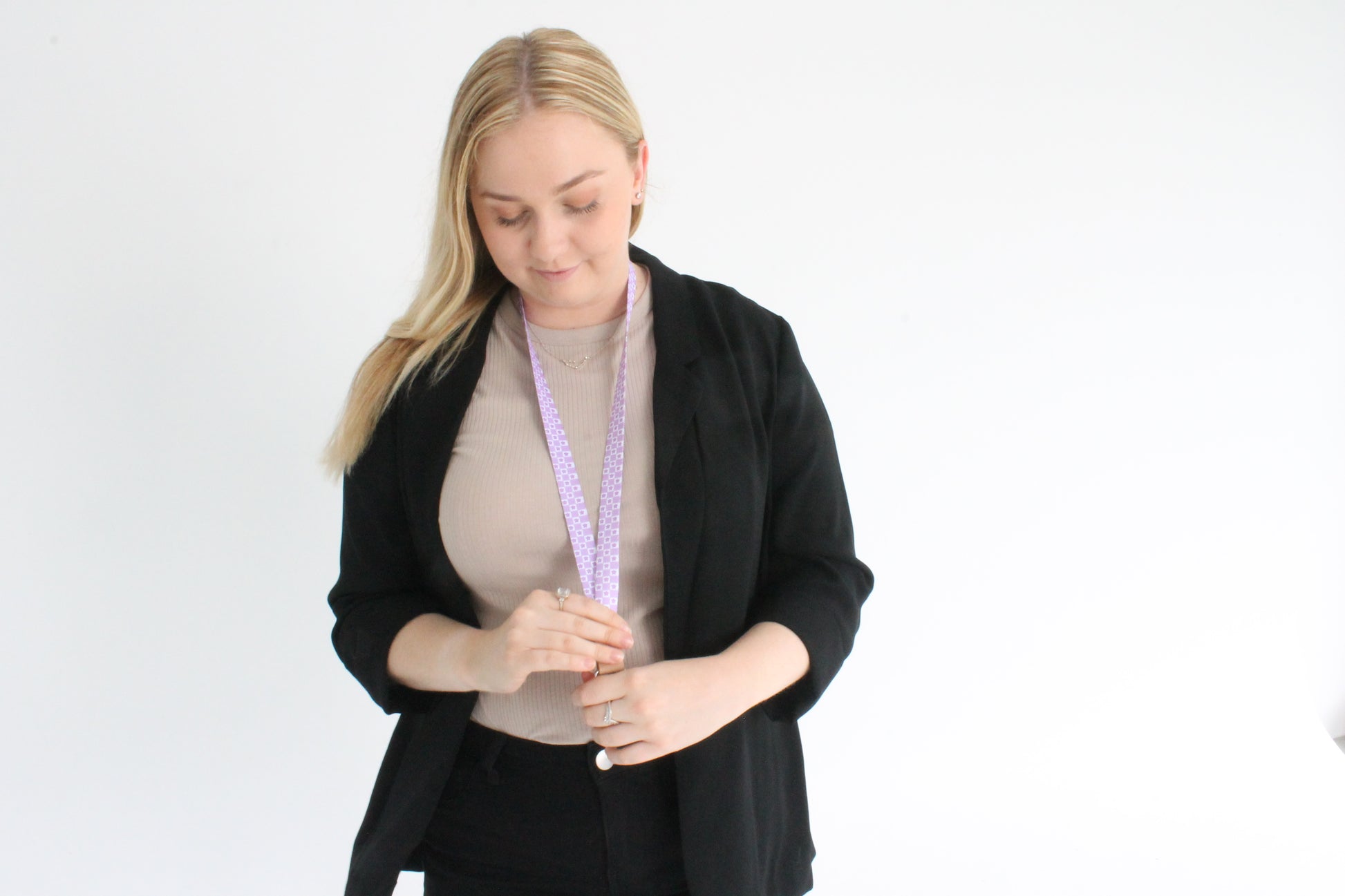 "Unleash the power of purple with our Lavender Flower Power lanyard! This fabric lanyard features beautiful flowers in the ever-popular design, adding a touch of charm to your everyday essentials. Keep your keys or ID secure with a stylish twist.