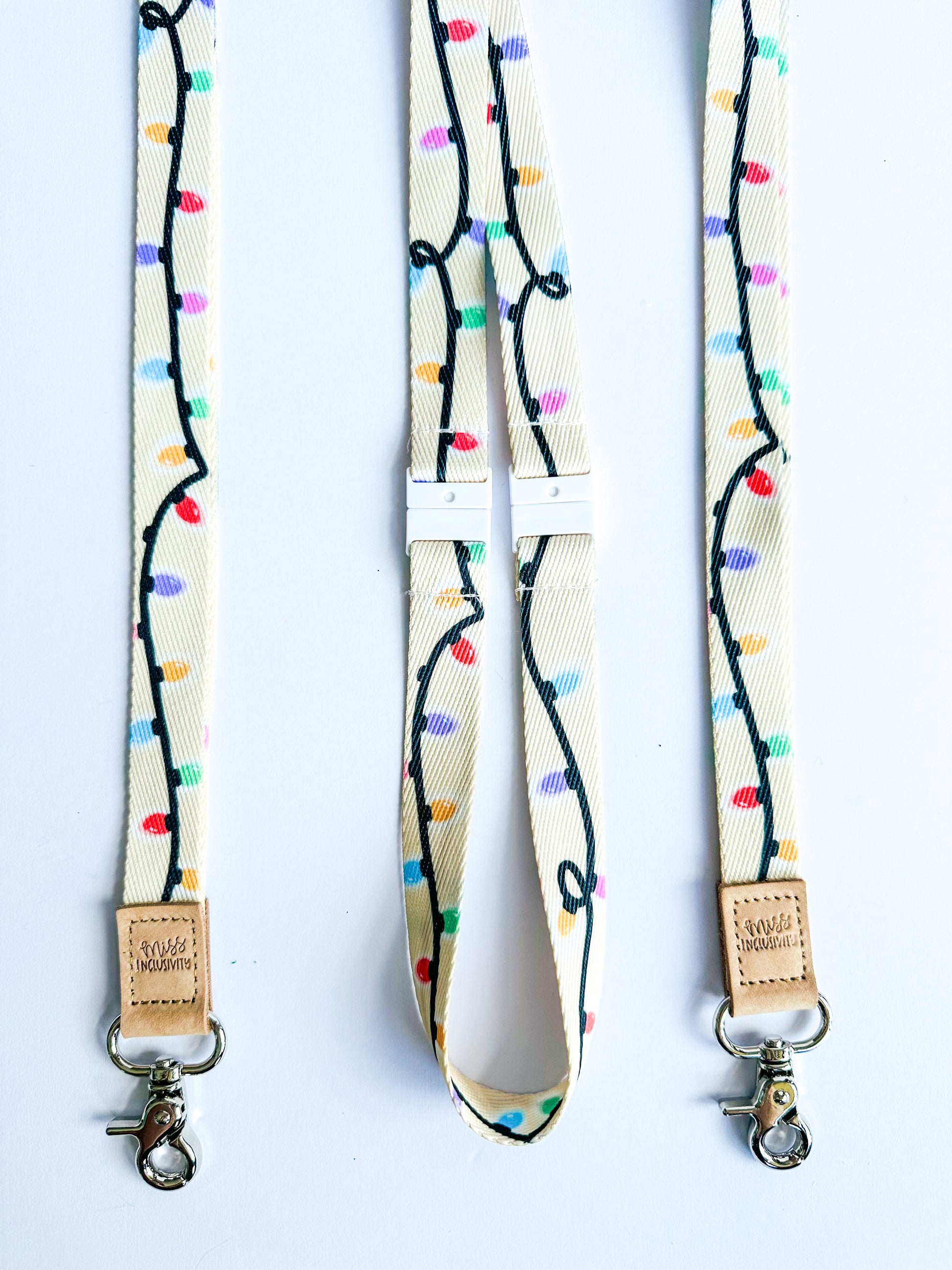 Stay festive all year long with this Neutral Christmas Lights Lanyard. It comes with white breakaway clasps to provide a secure fit while also keeping your style looking neutral. Deck your wardrobe out with Christmas lights that never get old!