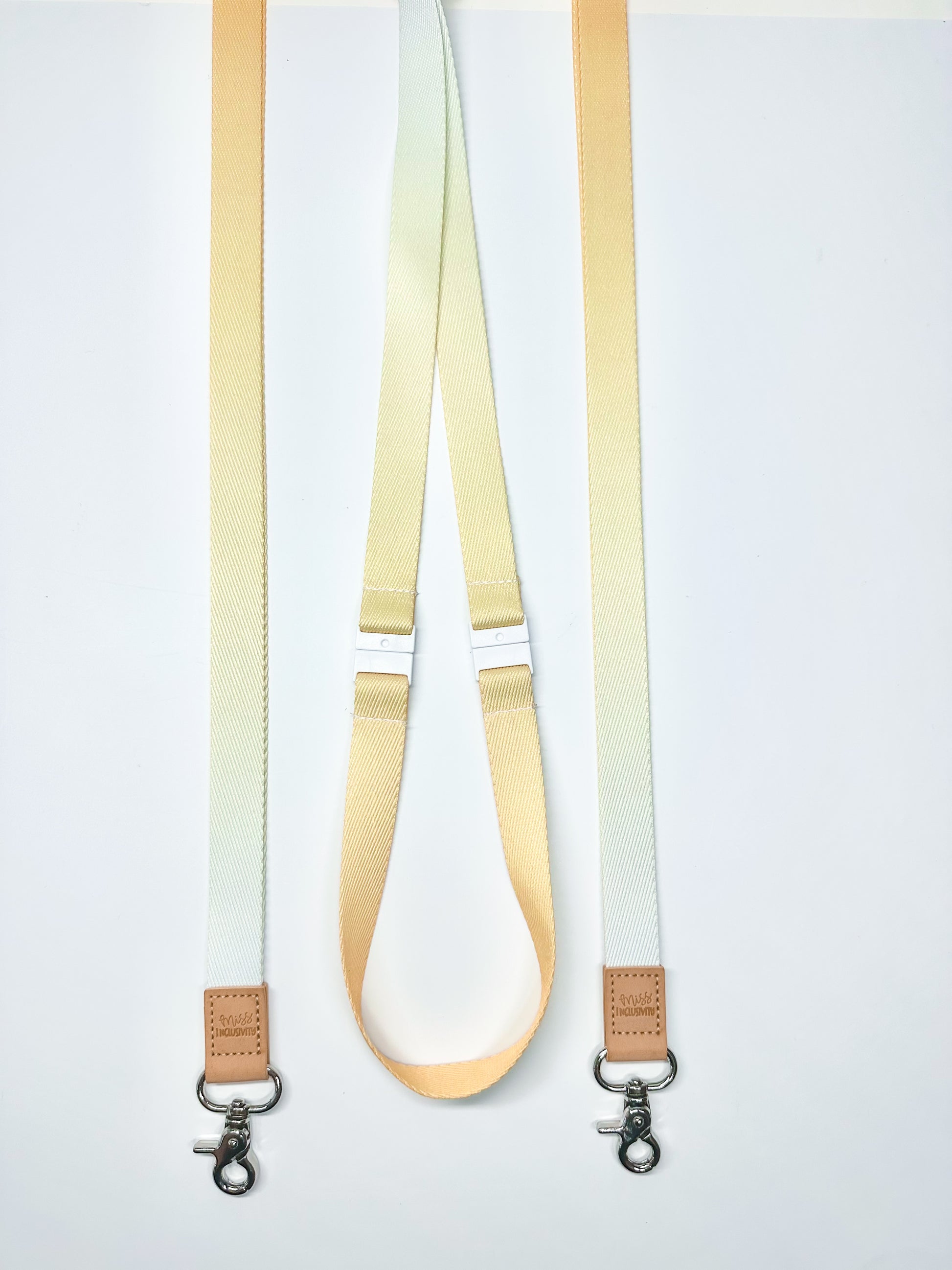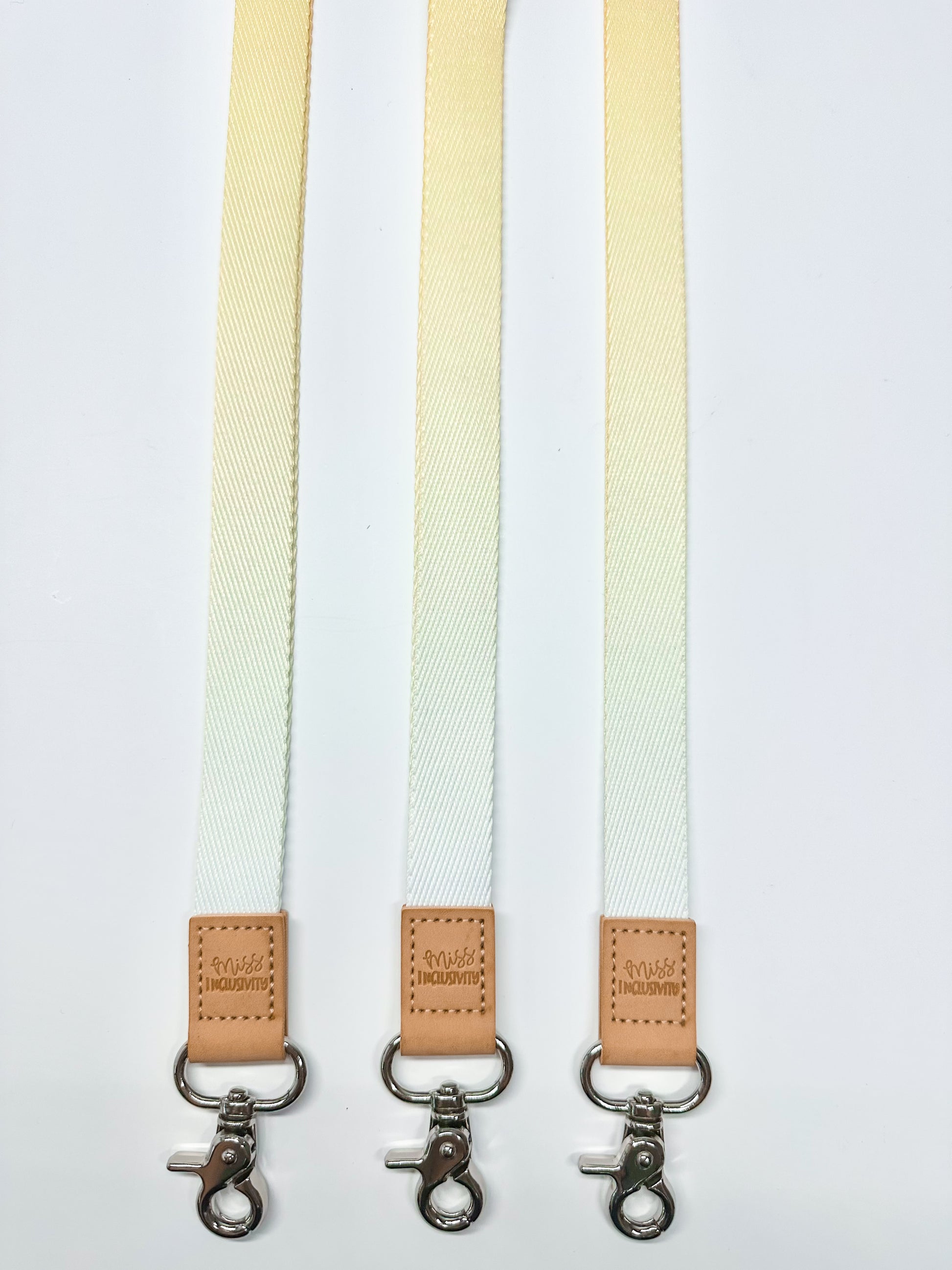 Made with vegan leather and featuring a white breakaway clasp for safety, this fabric lanyard showcases a vibrant yellow ombre colour scheme that fades down to a lighter hue.