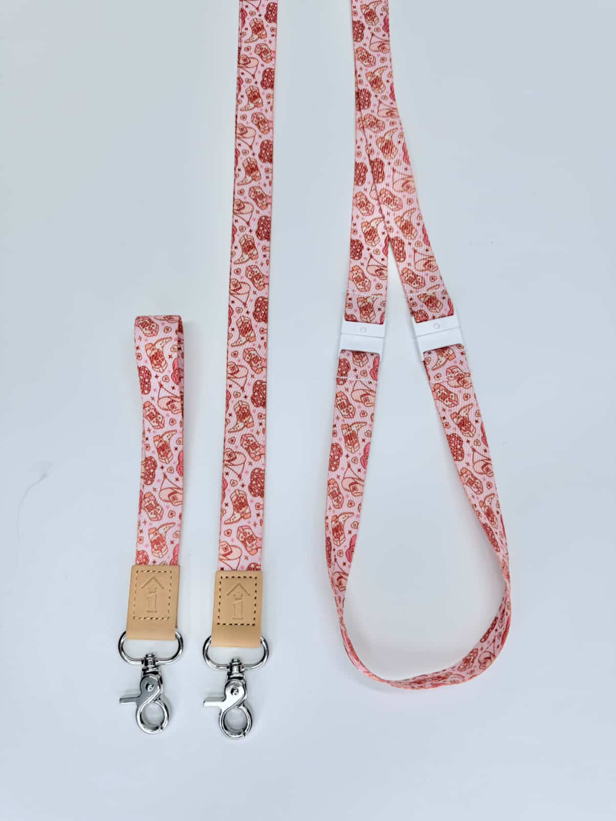 Crafted for style and practicality, this lanyard features a soft, durable fabric strap finished with a touch of vegan leatherat the base for a sleek look. A sturdy stainless steel clasp keeps your keys, cards, or essentials secure, while the plastic breakaway clasp adds extra safety and all-day comfort.