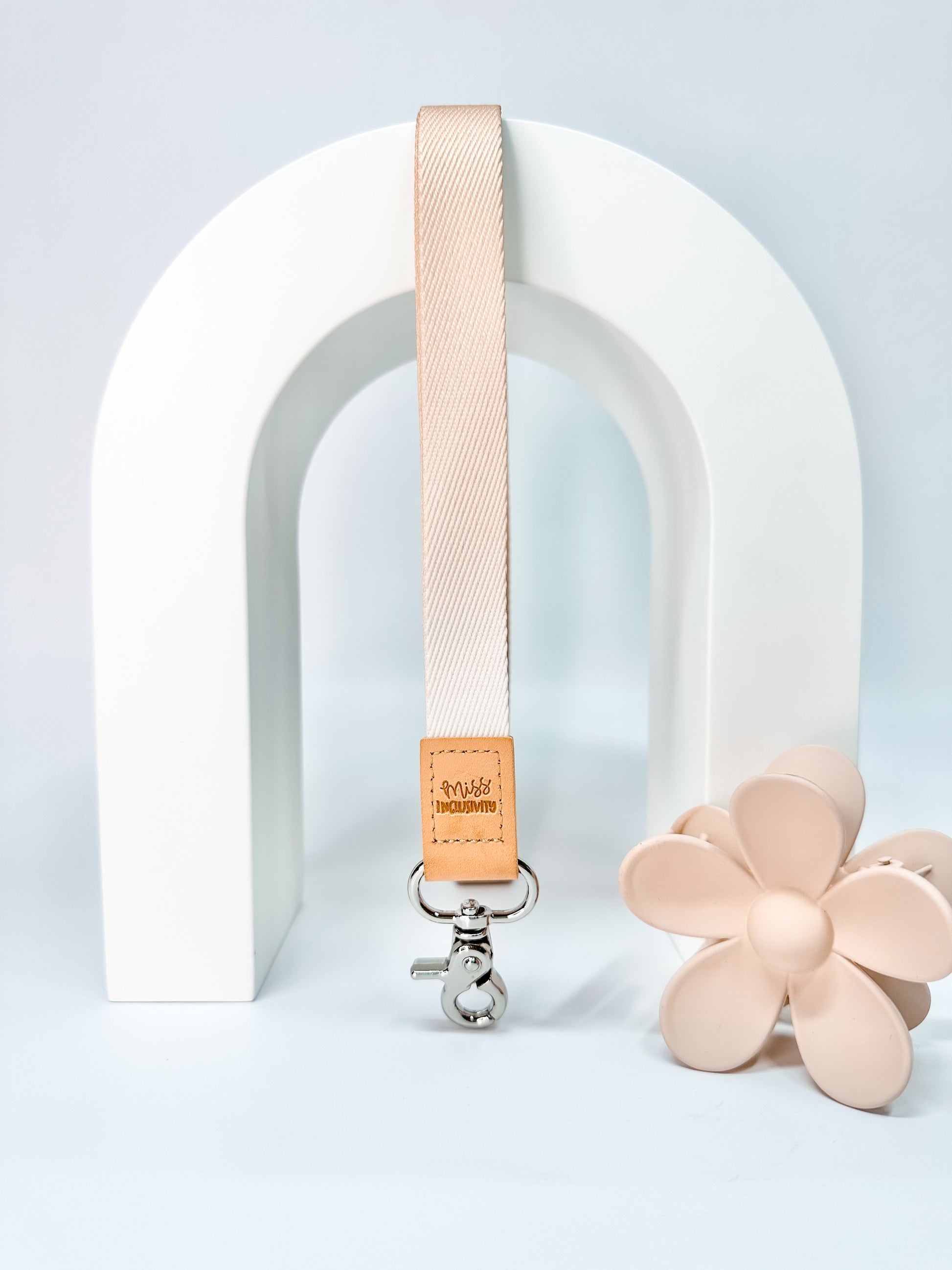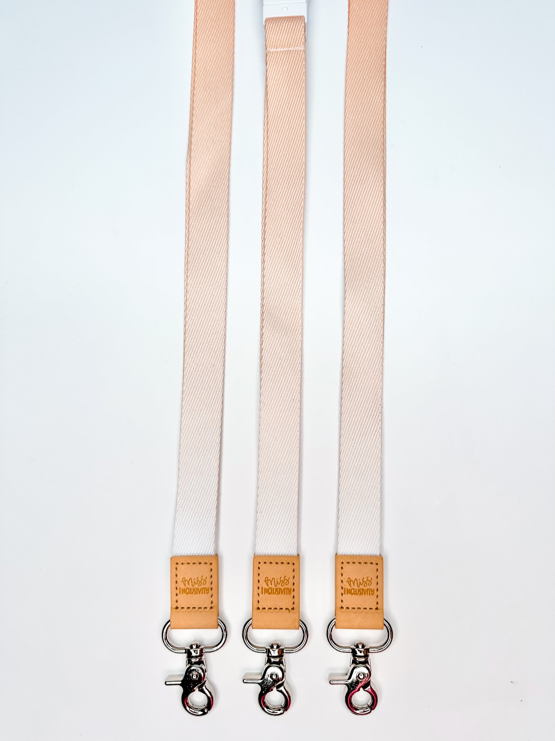 "The Silky Oak Ombre Lanyard is a must-have for any professional or student. Its soft fabric, beige undertone, and vegan leather support provide both comfort and style. The white breakaway clasp ensures safety, while the silver metal clasp at the bottom secures your essential items. Stay organized and fashionable with this functional lanyard."